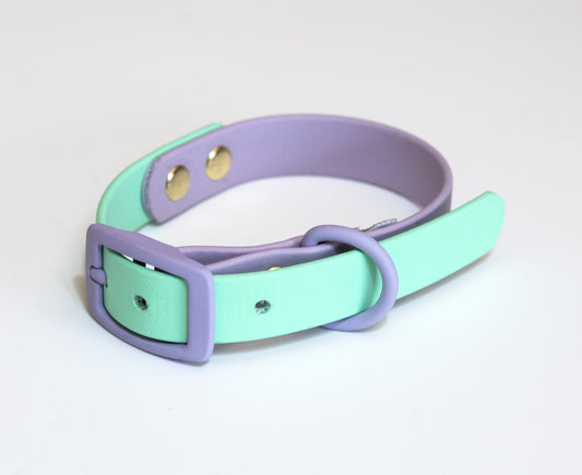 Δίχρωμο Κολάρο Biothane σε Παστέλ Μωβ και Κίτρινο