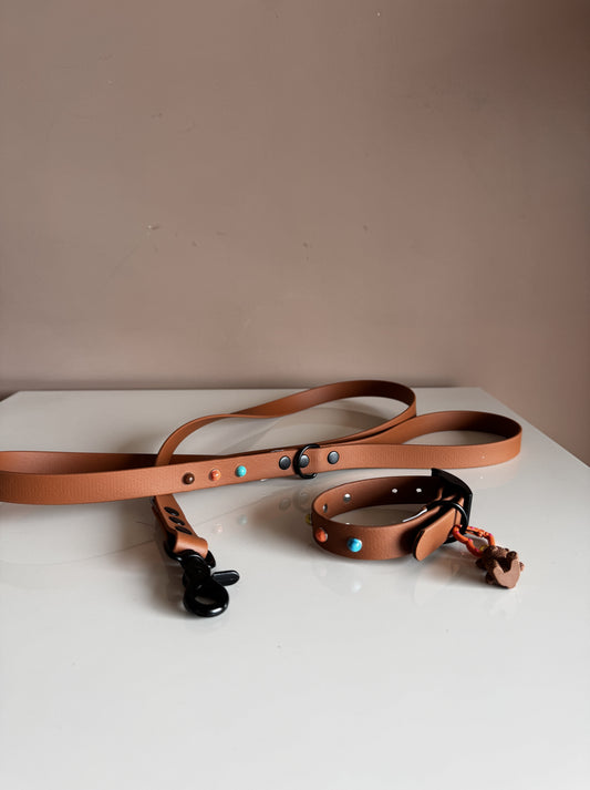 Βiothane Leash Brown -Colourful Studs- Safety loop