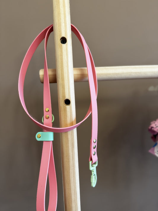 Οδηγός Biothane σε Ροζ με Πράσινο - Δακτύλιος ασφαλείας στη λαβή