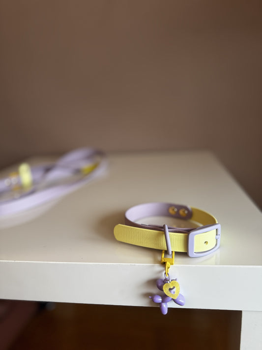 Δίχρωμο Κολάρο Biothane σε Παστέλ Μωβ και Κίτρινο