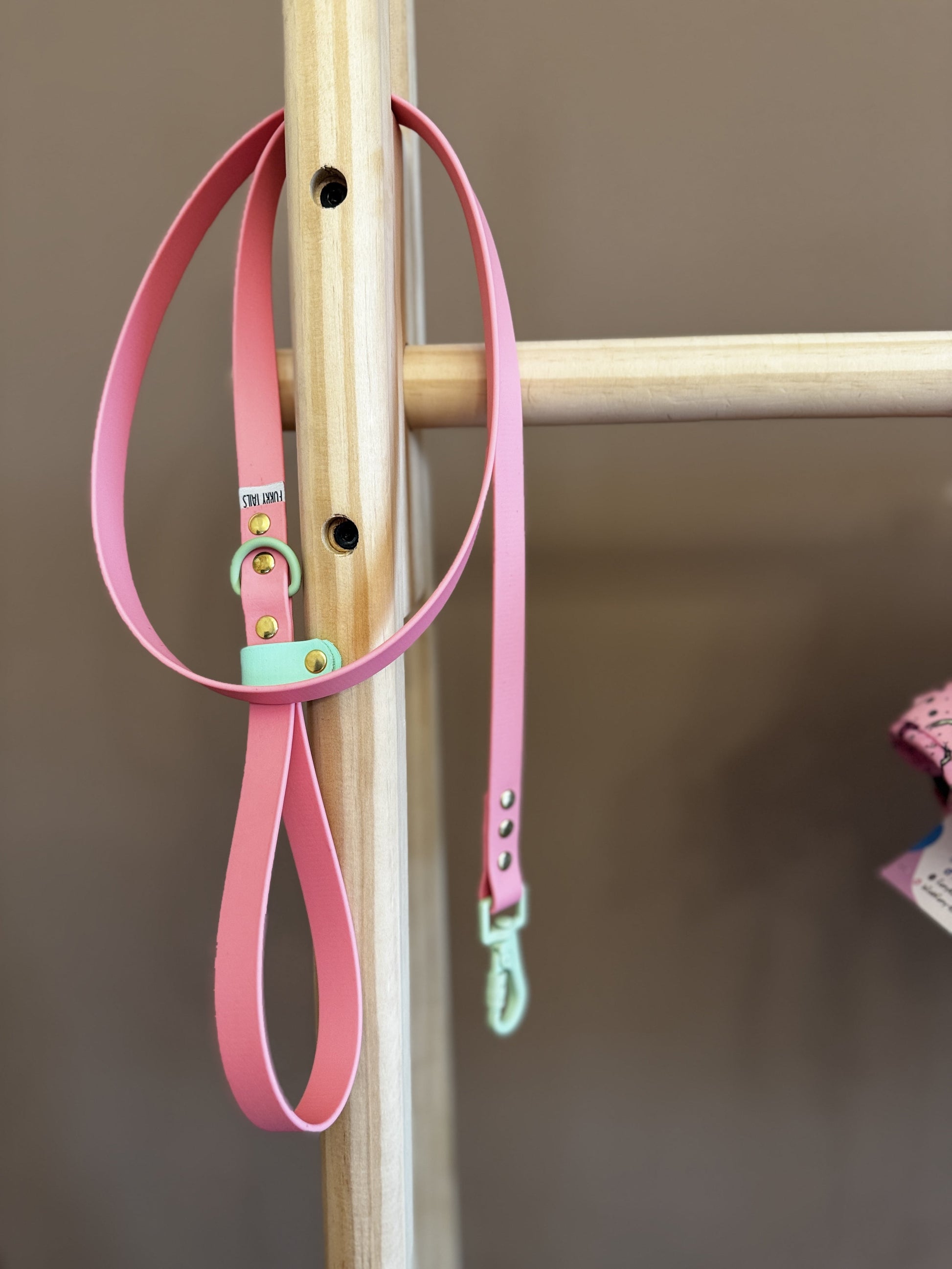 Βiothane Leash -Pink -Carribean Green - Safety loop