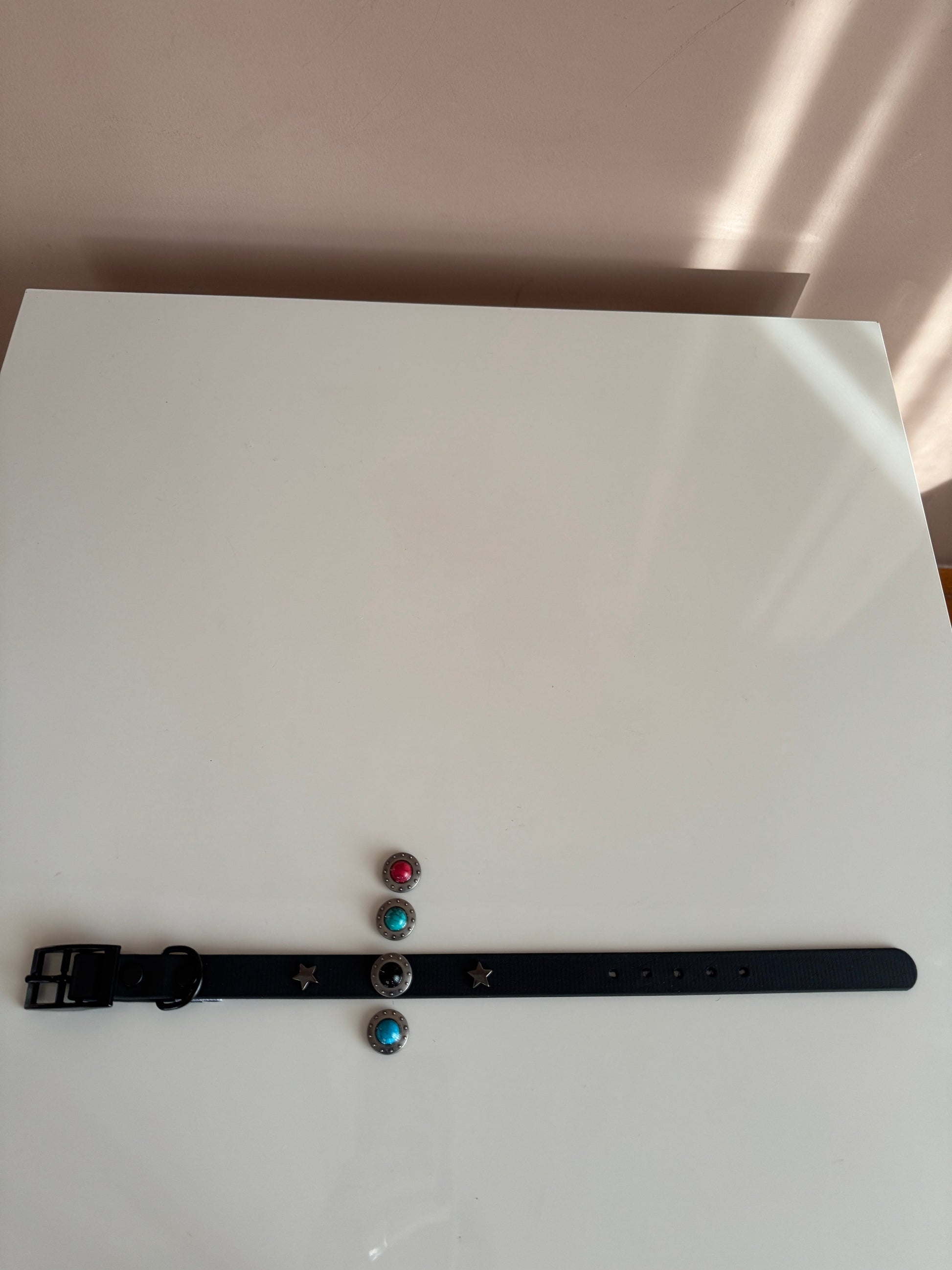 A chic and unique collar designed to shine on every walk. 🖤⭐🐾
