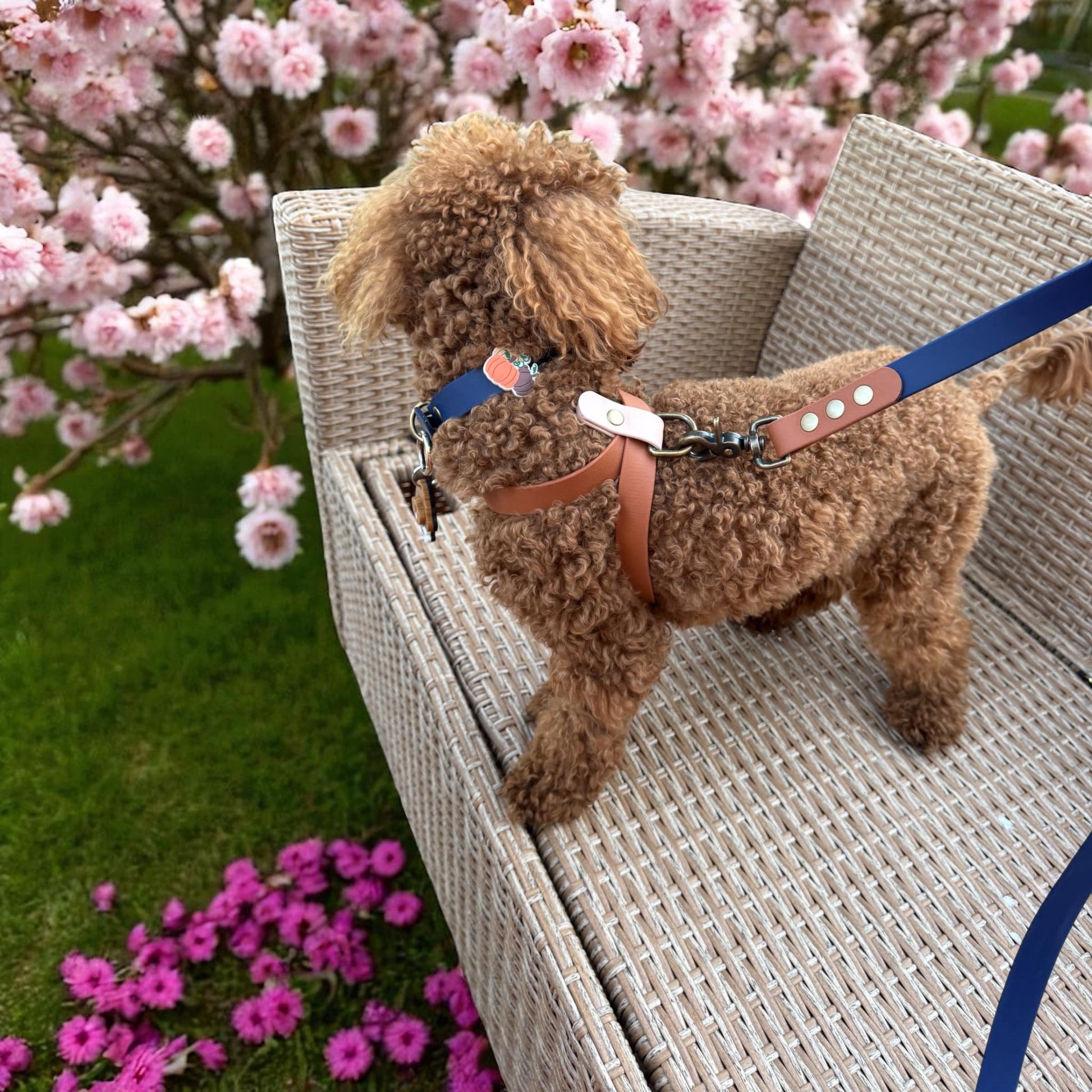 A timeless combination of earthy brown with a soft beige accent, this harness blends durability with elegance. Crafted from premium Biothane, it’s waterproof, soft, and designed to keep its style through every adventure. With antique brass details and an adjustable fit, it’s as practical as it is chic – the perfect everyday harness.