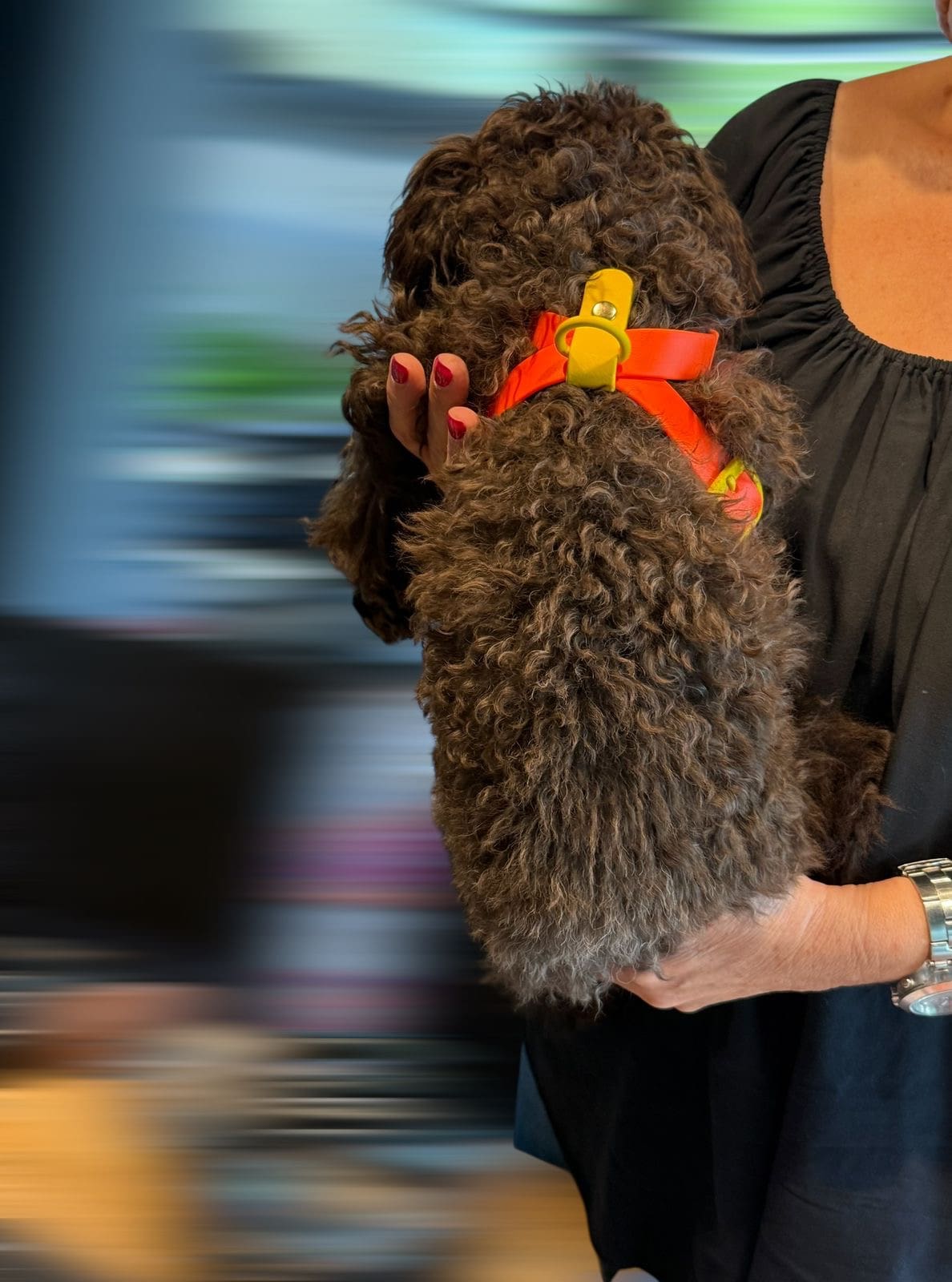 Bright, bold, and full of energy – this harness in vibrant orange with cheerful yellow details is made for pups who love to stand out. Crafted from premium Biothane, it’s waterproof, soft, and built to keep its shine through every adventure. With sleek metallic details and an adjustable fit, it combines comfort, durability, and style in one.